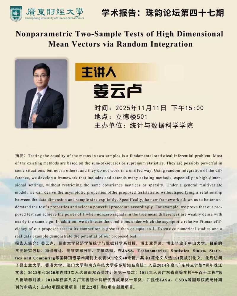 【学术讲座-广州】 珠韵论坛第四十七期 姜云卢 教授