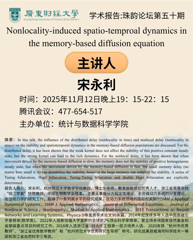 【学术讲座】 珠韵论坛第五十期 宋永利 教授