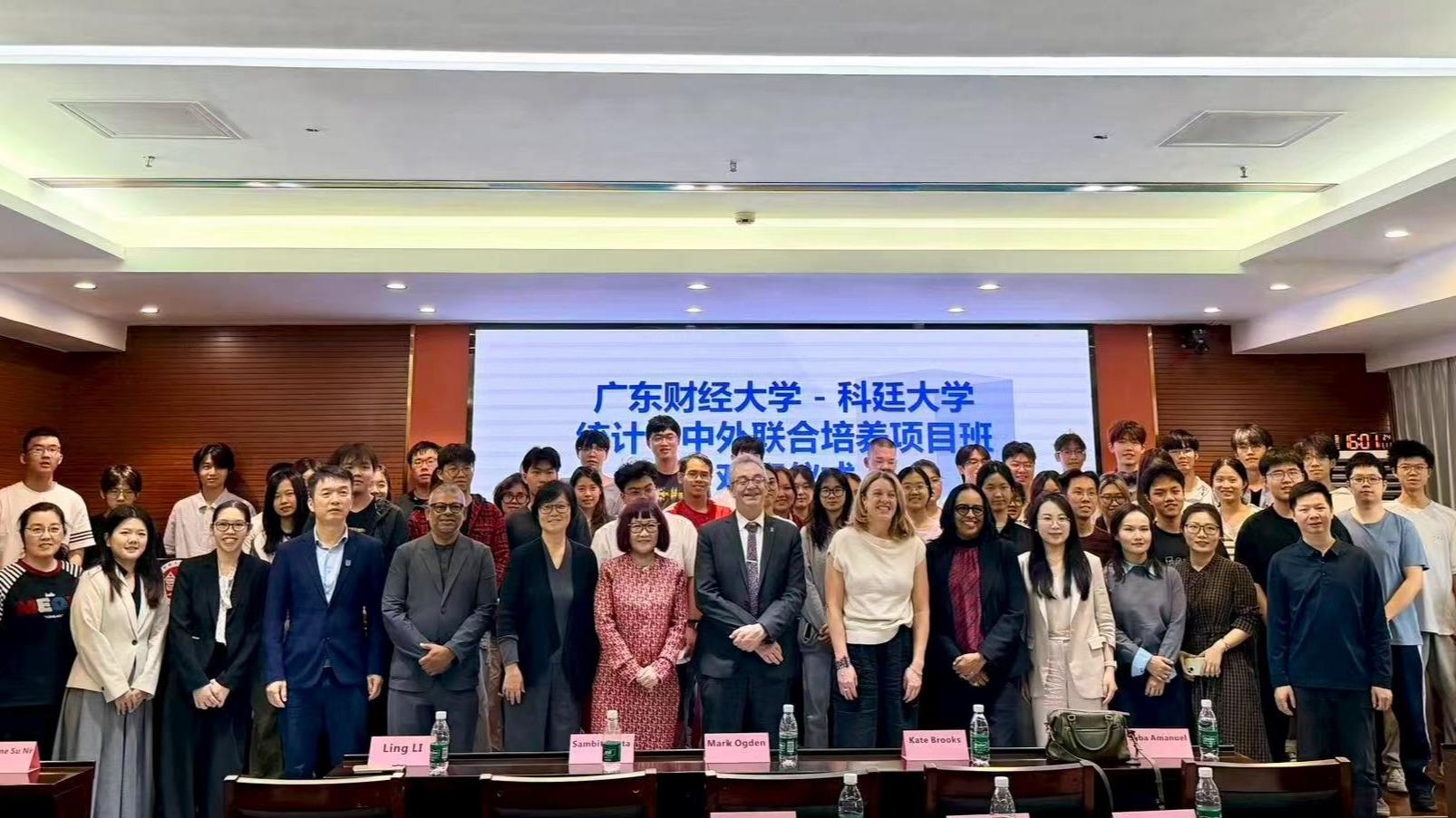 2025 年 11 月 11 日,广东财经大学 - 科廷大学统计学中外联合培养项目班欢迎仪式在立德楼 543 会议室如期举行。出席本次欢迎仪式的嘉宾包括:科廷大学副校长马克·奥格登教授、科学与工程学院国际事务院长桑比特·达塔教授、电气工程、计算机与数学科学学院院长凯特·布鲁克斯教授、中国项目学术负责人李凌教授、全球合作伙伴顾问萨巴·阿曼纽尔老师;广东财经大学统计与数据科学学院副院长陈建超、国际交流与合作部副科长石璇、统计学中外联合培养项目班主任古勇毅、徐晓琳、周若榆、辅导员文闻,以及协会苏会长与各位项目学生指导老师。