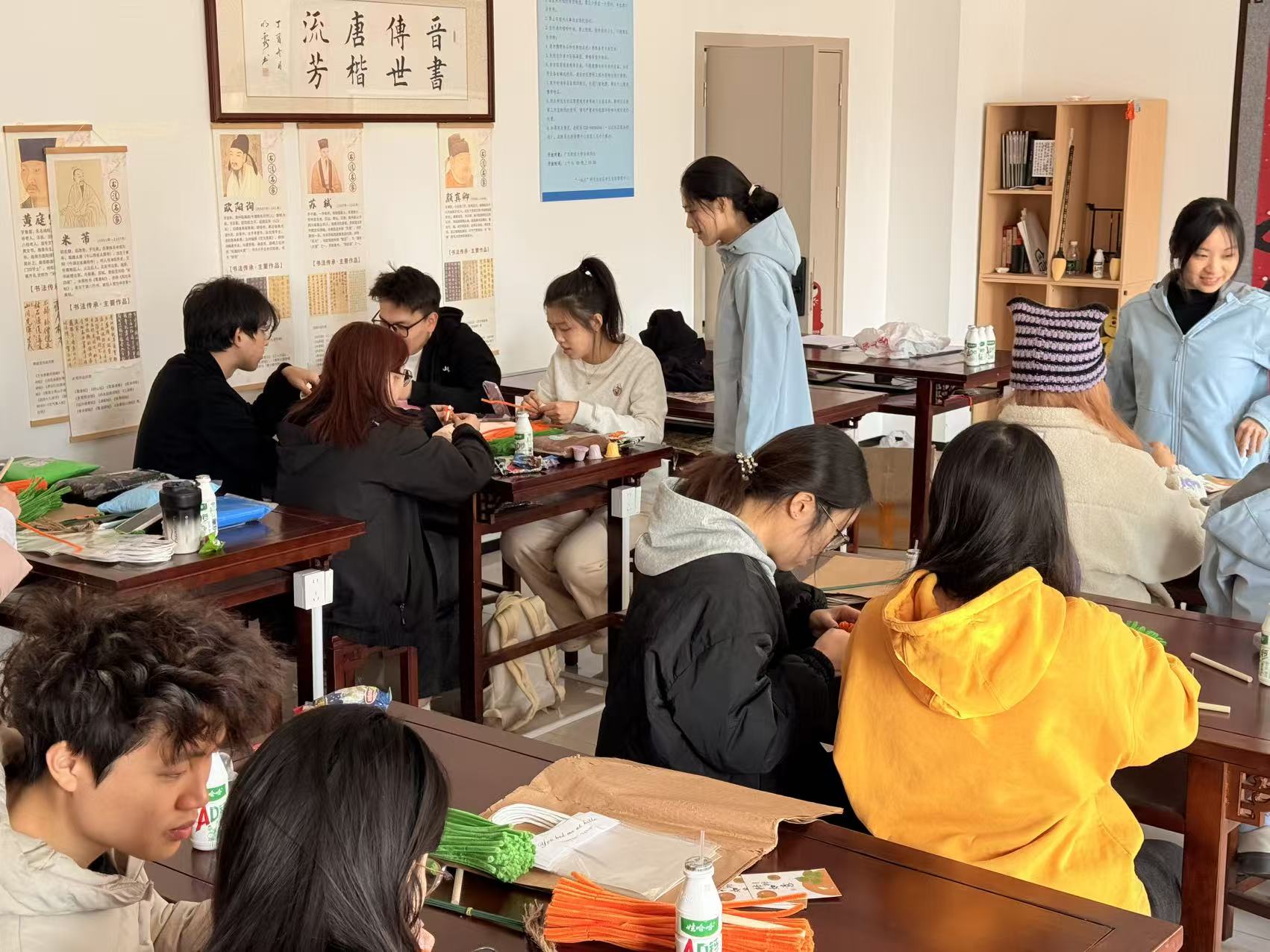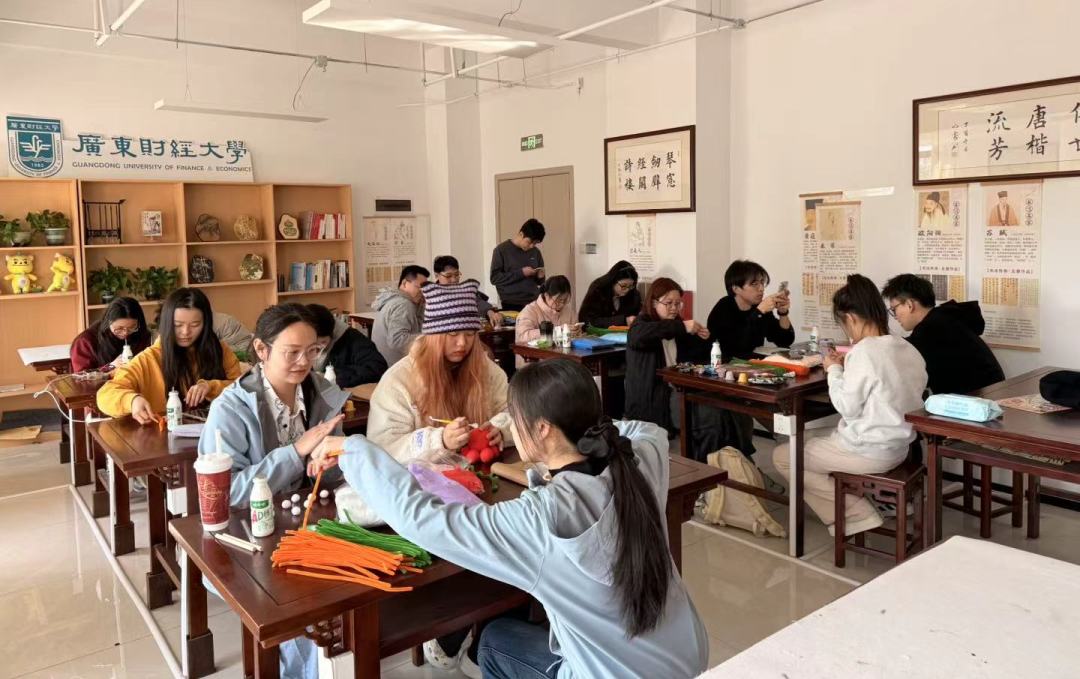 元旦将至,新岁启封。为弘扬中华优秀传统文化,丰富学子精神文化生活,2026年1月3日,我院在广州校区揽月楼331美育工作室举办举办“扭出星愿·棒贺元春”研究生元旦手工活动,辅导员郭影玲老师共同参与,将传统节日与手工创作相融,同学们在指尖创意中编织新年美好祝福。