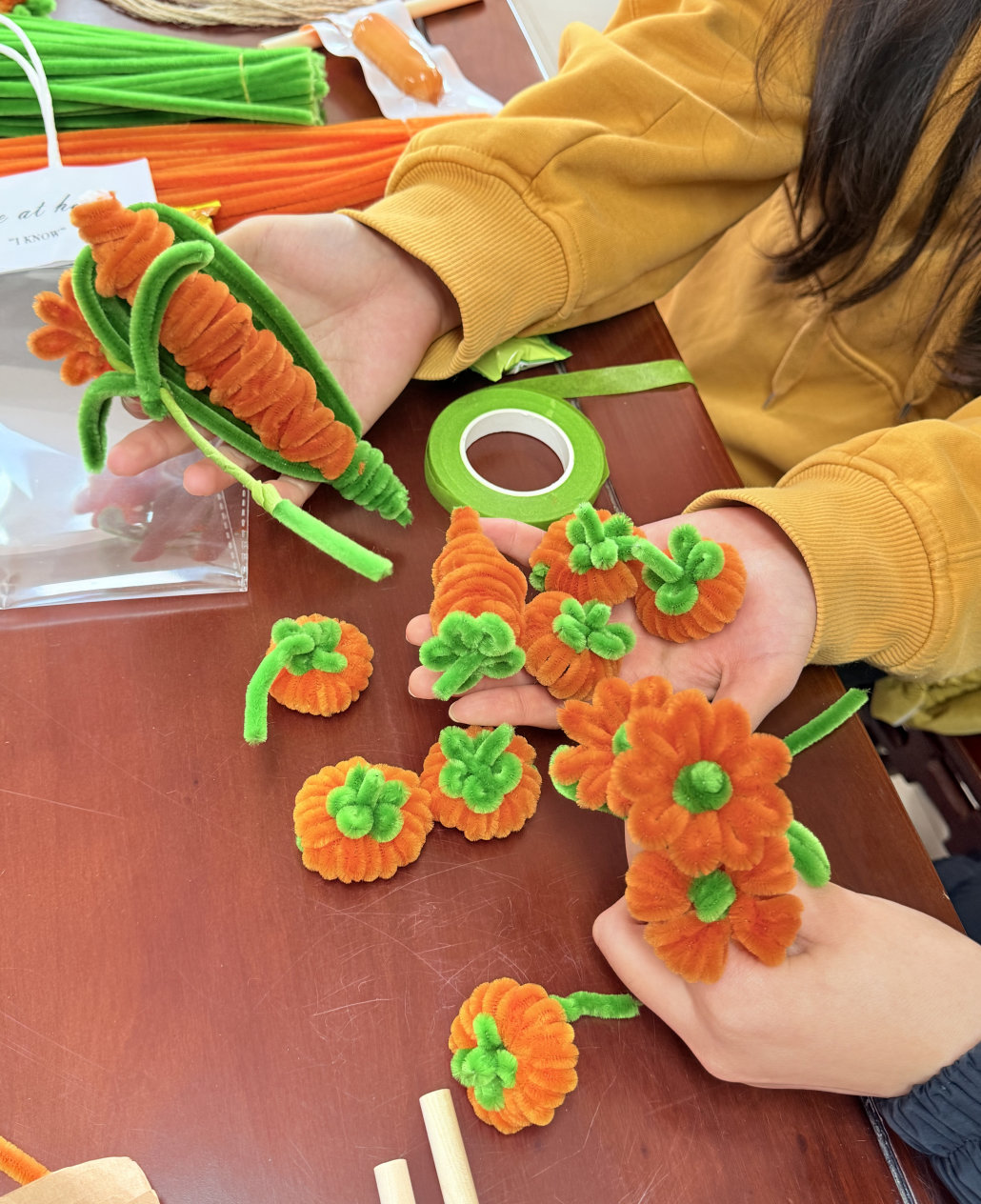 活动现场,学院为同学们准备了扭扭棒、胶带、装饰卡片等丰富物料,大家围绕“元旦迎新”主题,以“柿柿如意”柿子造型为核心创作方向,自由发挥巧思。