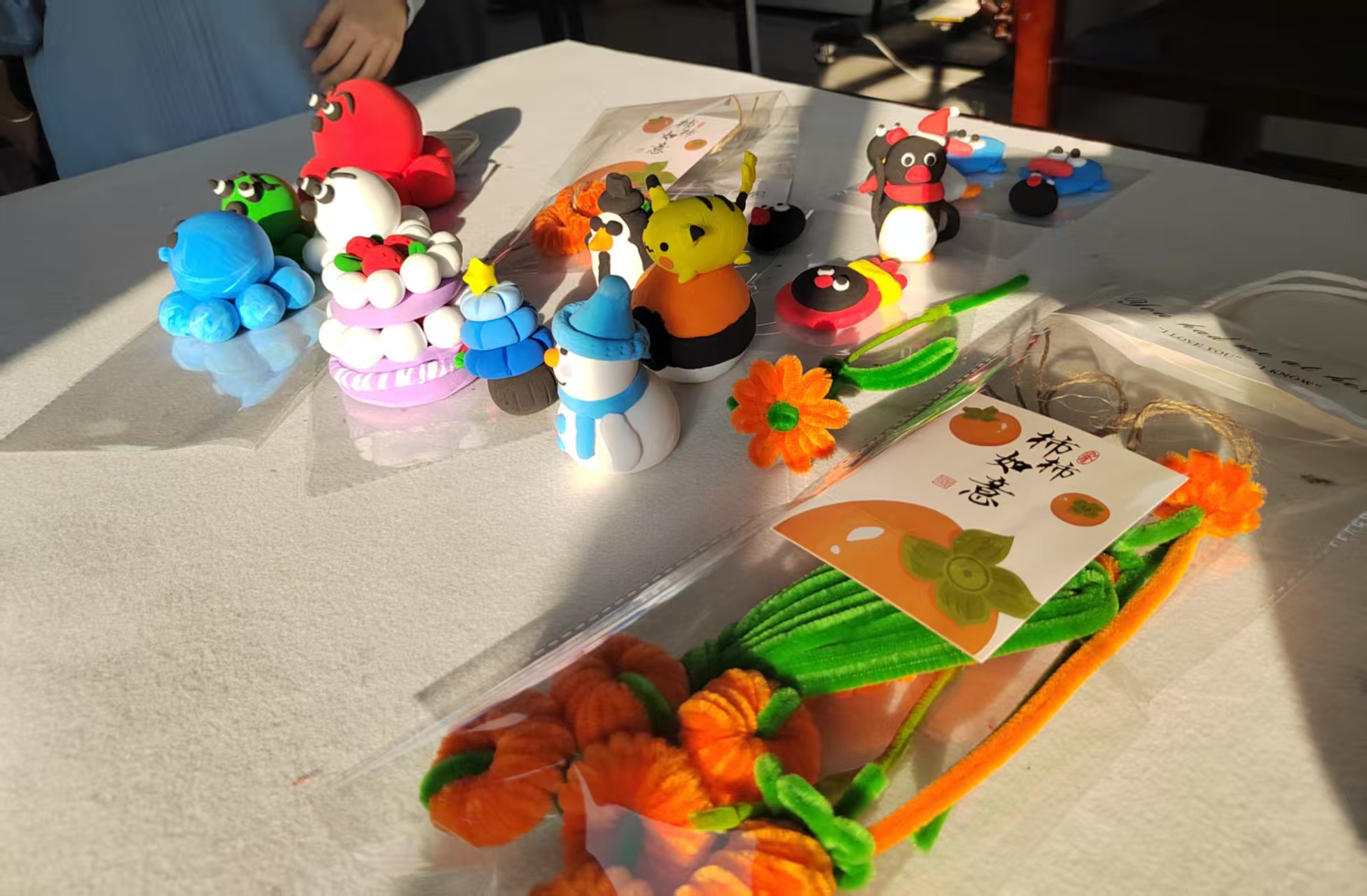 同学们制作的黏土作品精致可爱,皮卡丘、企鹅、蛋糕等造型栩栩如生,为活动增添了更多创意灵感,也展现了手工创作的多样可能性。