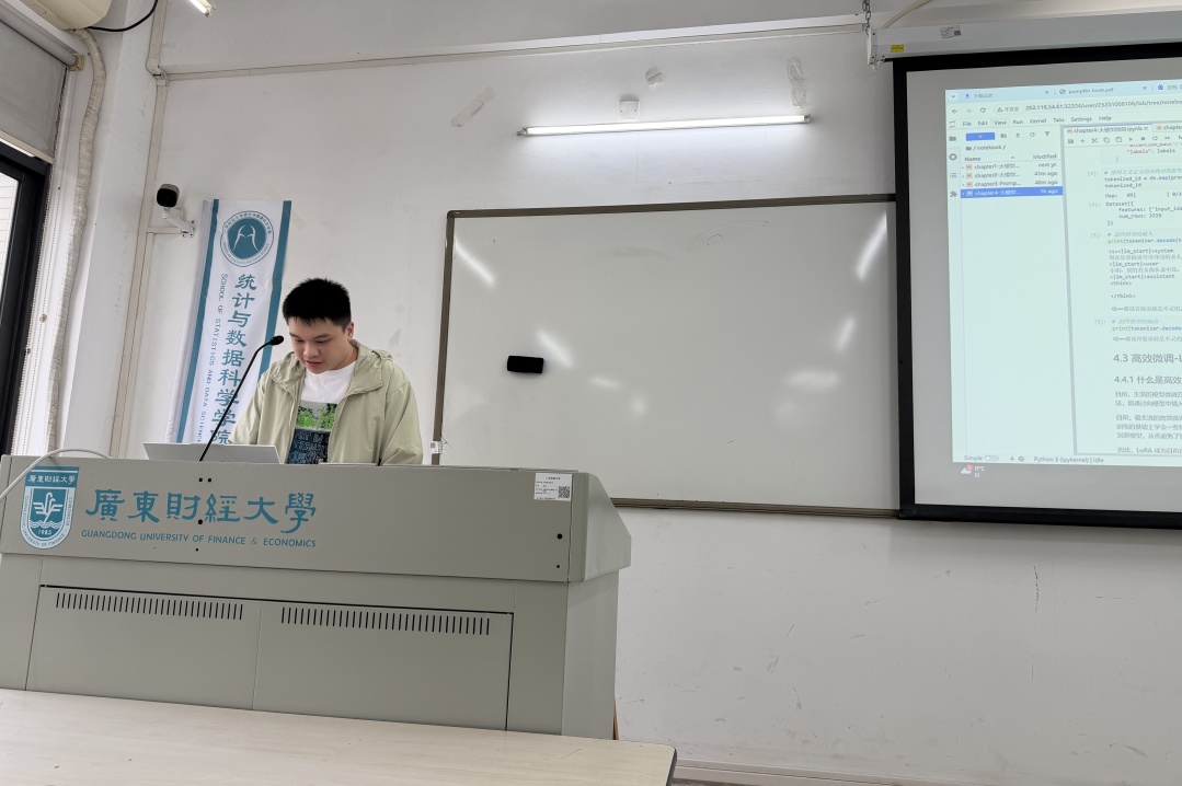 教学环节实行“理论授课+实战实操+量化考核”三位一体模式,Datawhale社区导师线上示范,数据科学系教工党支部王行志、陈光明老师线下答疑,数学系学生党支部助教团队手把手指导,课程用时两周完成,确保不同专业背景的同学都能“跟得上、做得出、用得好”。