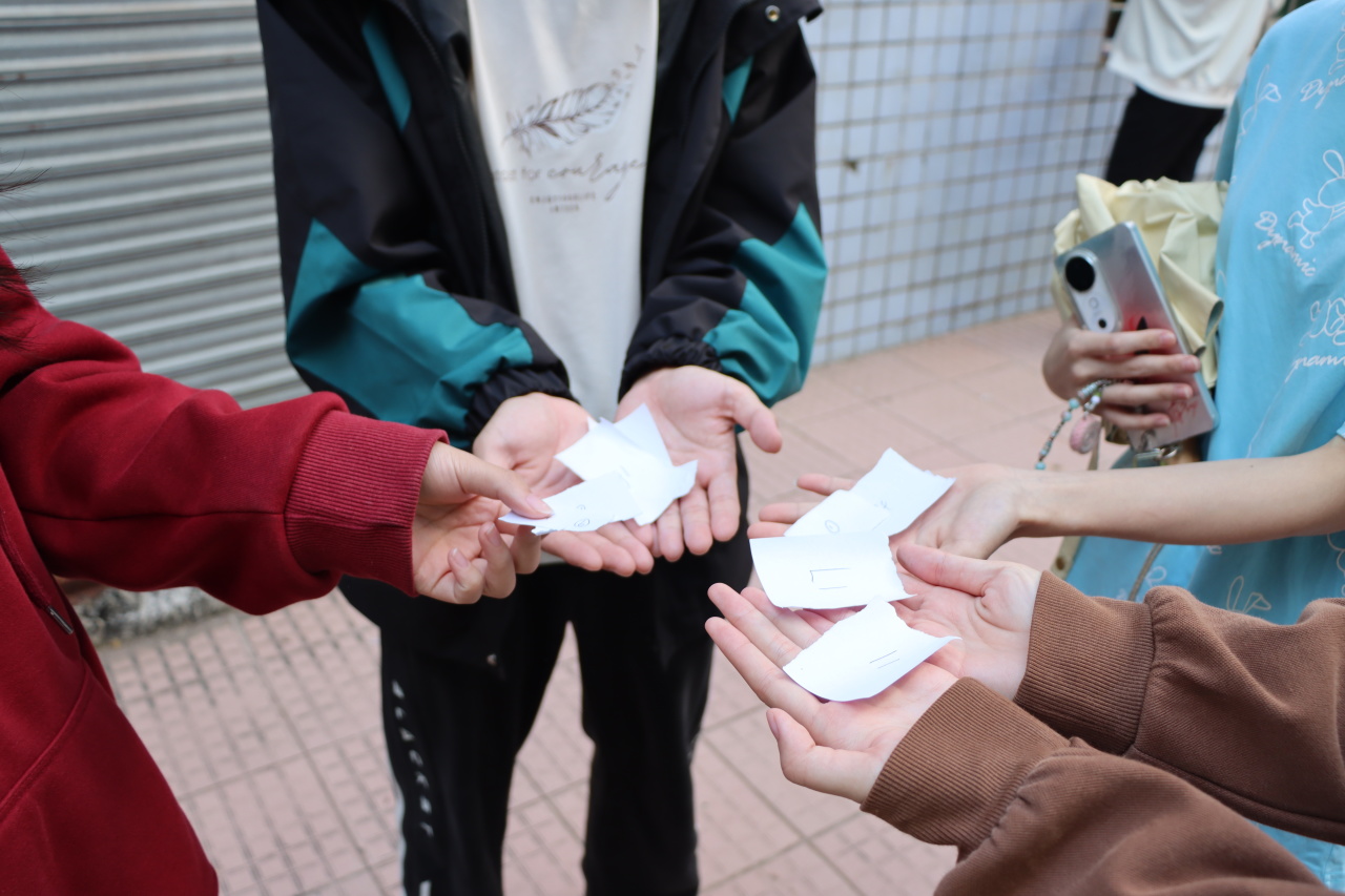 劳动实践后,活动进入“红色寻宝”环节。各小组在限定时间内寻找隐藏的题盒,通过解答党史、团史等相关题目获取积分。活动将红色知识学习融入趣味游戏,寓教于乐。在“历史整理者”任务中,各小组通过排序重大历史事件卡片,重温了从五四运动到新中国建立的峥嵘岁月,深化对红色精神的理解。