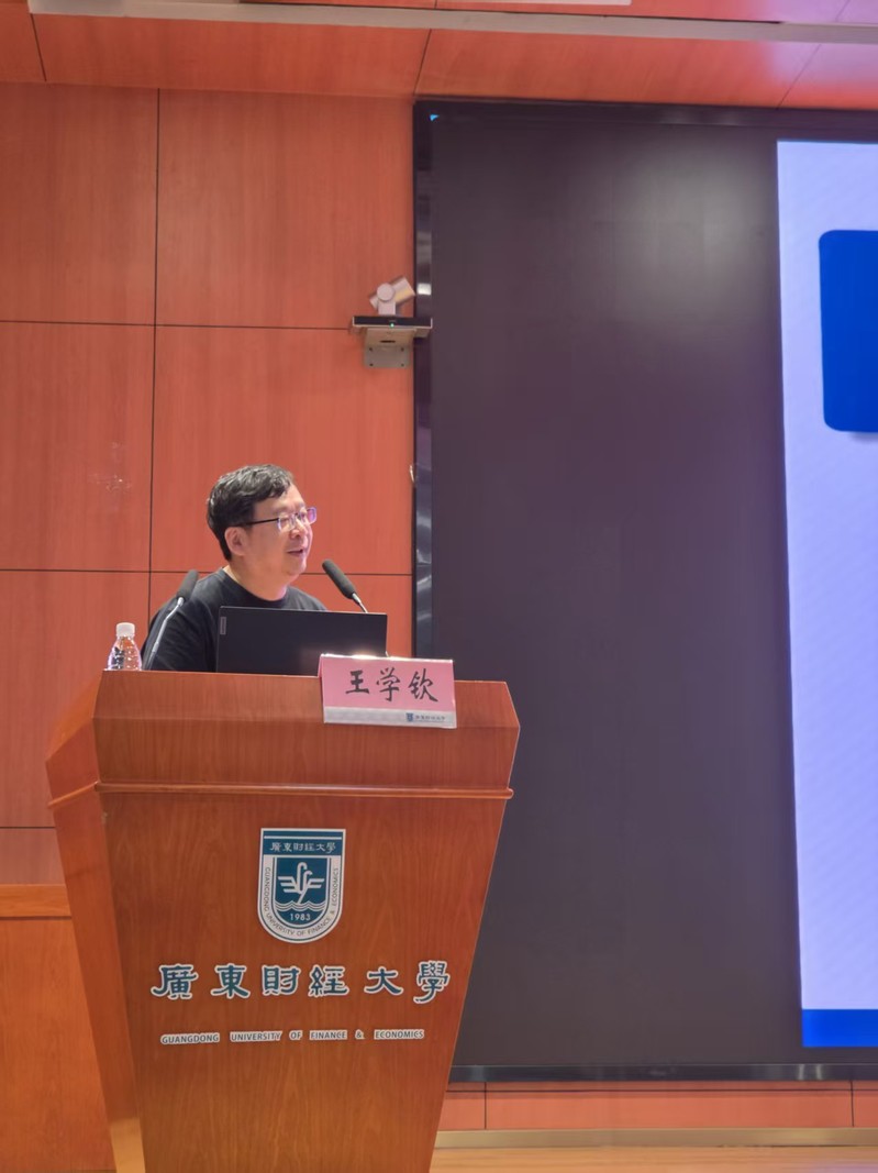 副校长鲁晓明教授在致辞中代表学校向王学钦教授的莅临表示诚挚欢迎。鲁晓明指出,学校近年来紧密围绕经济社会发展需求,大力推动新文科与交叉学科建设,统计学作为数据科学的核心,在金融风险管理、数字化经济研究及政策评估等领域发挥着不可替代的作用。鲁晓明表示,王学钦教授在统计学理论与算法领域的深厚造诣,将为我校相关学科的原始创新与交叉研究提供宝贵指引。鲁晓明寄语统计与数据科学学院师生,要以此次高水平学术交流为契机,既要汲取前沿技术精髓,更要学习专家潜心研究、严谨治学的学术情怀,积极推动我校统计学研究与国家重大战略需求深度融合。
