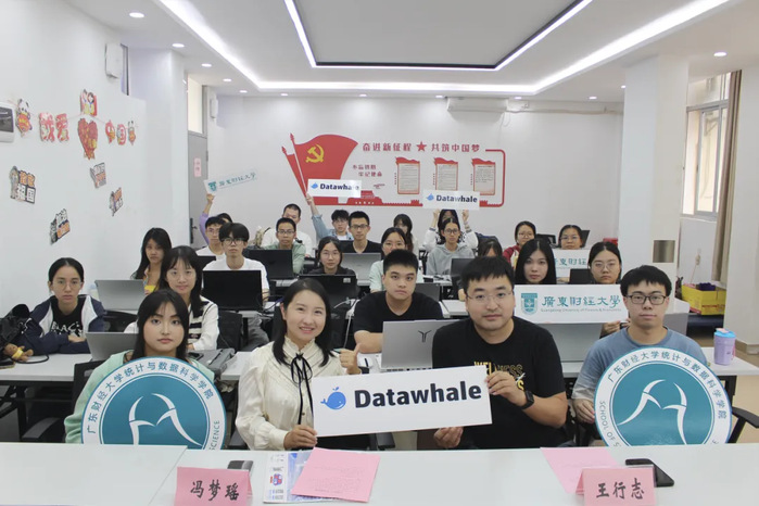 10月28日-11月4日,广东财经大学统计与数据科学学院联合Datawhale开源学习社区成功举办“大模型应用开发实训营”。此次实训营面向全校学生开放,吸引来自统计、数据科学与大数据技术、金融、计算机等不同专业的200名余同学踊跃报名,学院最后遴选100名同学参加实训营。实训营依托数学系学生党支部品牌活动“悦读行动”,由数学系学生党支部和数据科学系教工党支部联合组织实施。